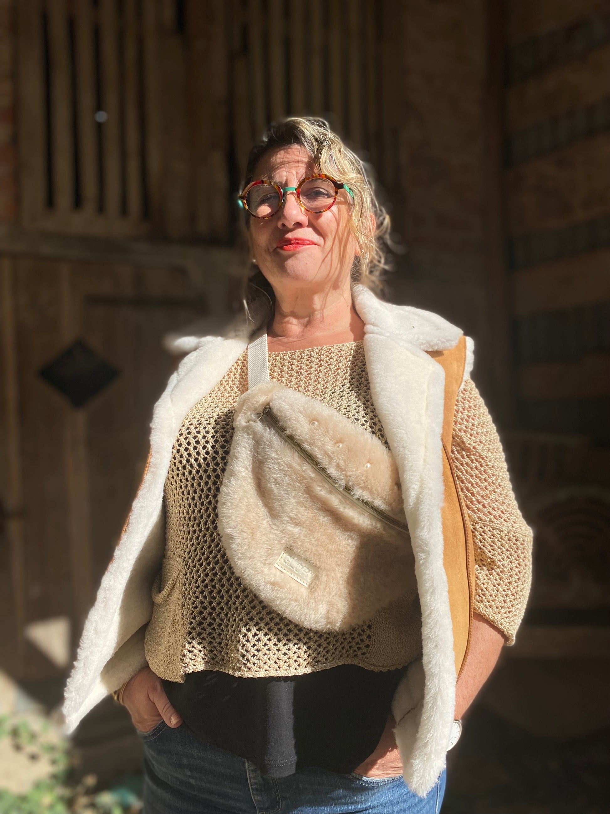 De plus, ajoutez des perles sur le dessus pour un détail unique et modifiez la couleur de la sangle réglable pour qu'elle s'harmonise parfaitement avec votre style personnel. Équipée d'une fermeture éclair pour maintenir vos objets en toute sécurité, cette banane en peau lainée incarne l'exceptionnalité de l'artisanat avec une matière naturelle de qualité.